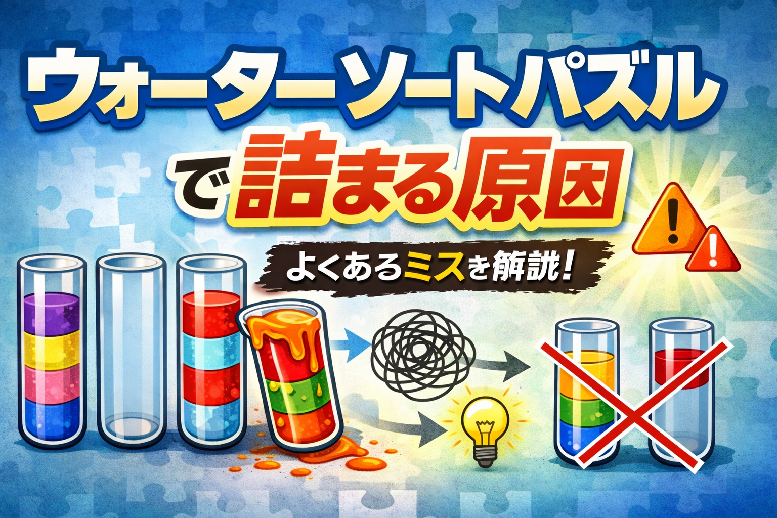 ウォーターソートパズルで詰まる原因の多くは、次の4つです。