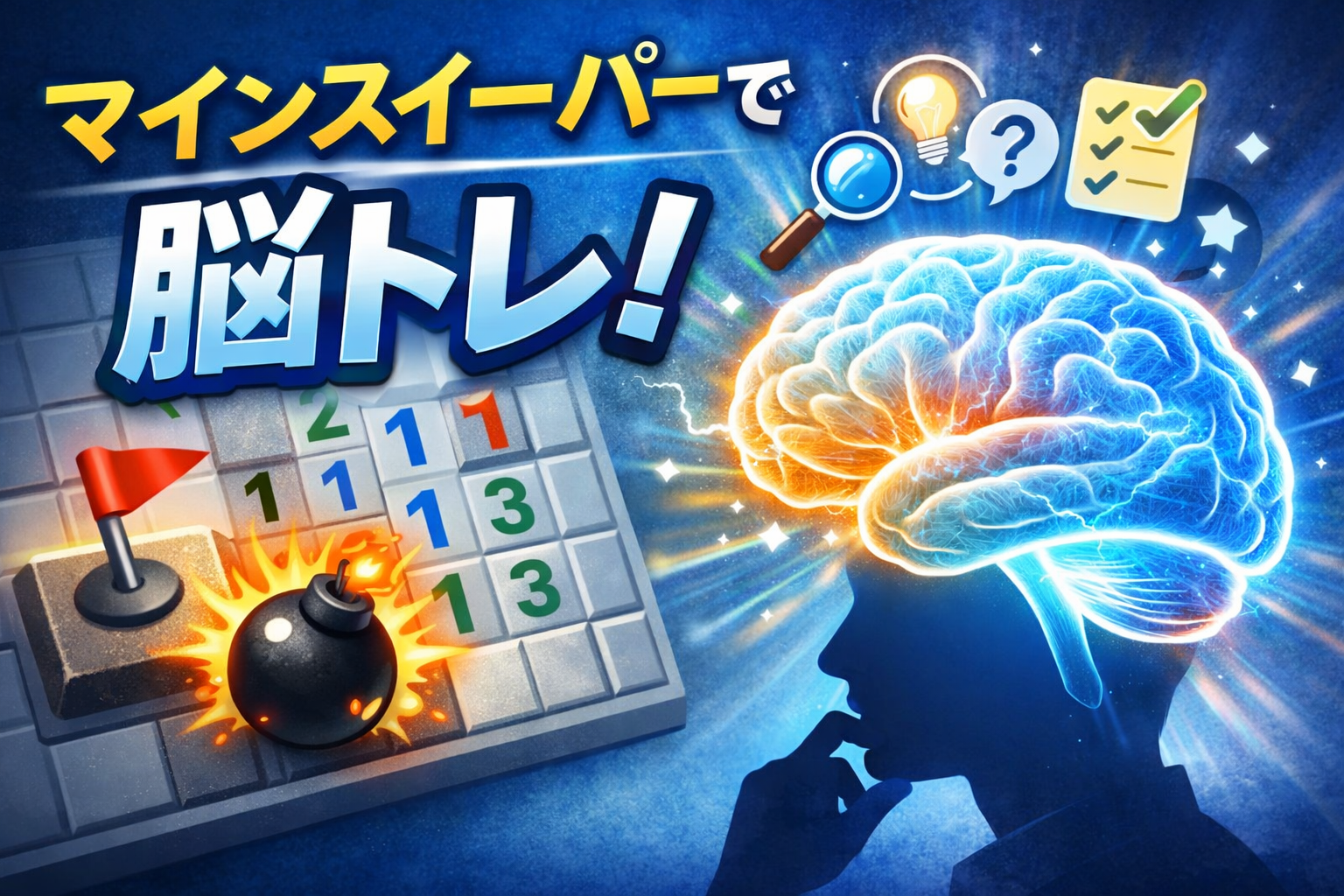 マインスイーパーは、遊び方を少し意識するだけで、論理思考・集中力・判断力を同時に鍛えられる脳トレゲームになります。以下のポイントを意識してプレイすると、脳トレ効果が大きく高まります。